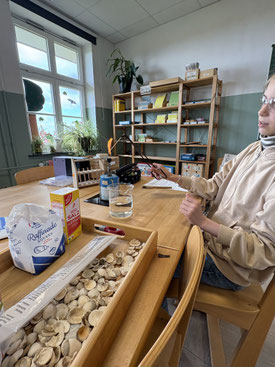 Im NaWi-Unterricht sind wir in den Chemie-Schwerpunkt gestartet. Zum Einstieg haben wir uns mit dem Unterschied zwischen chemischen Reaktionen und physikalischen Vorgängen beschäftigt. Nach einem Theorie-Input konnte die Schülerin ihr Wissen direkt in einer Reihe von Versuchen anwenden und vertiefen. Darunter waren z.B. Versuche mit Muscheln und Essig oder Zucker karamellisieren.