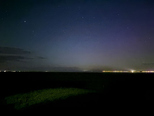 Kaum sind die ersten zwei Schultage vergangen, zeigte sich in der vergangenen Nacht über der Hallig erneut ein besonderes Schauspiel: Am Himmel waren Polarlichter zu sehen. Grünliche Schleier und zarte Bögen zogen sich über den Horizont, zeitweise schimmerte sogar ein rötlicher Ton durch. Leider lagen meine Schülerinnen bereits im Bett, sodass sie am nächsten Morgen nur meine Bilder anschauen konnten.