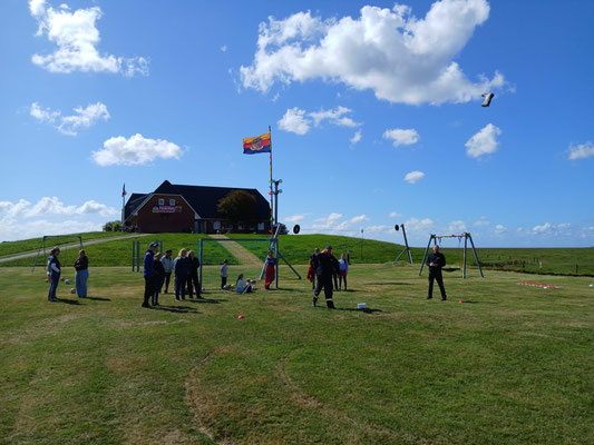 Bereits im September stand das erste Landunter an. Für die beiden Schülerinnen hieß das: Distanzunterricht von zu Hause aus. Zum Glück sind wir darin bestens geübt. Wir haben uns online getroffen, gemeinsam gearbeitet und den Schultag trotz Sturm und Hochwasser erfolgreich gestaltet.