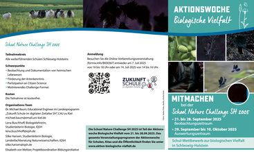 Auch in diesem Jahr ist die Halligschule wieder bei der School Nature Challenge dabei! Gemeinsam machen wir uns auf den Weg, um die Natur direkt vor unserer Haustür zu entdecken und zu dokumentieren. Einen ganzen Schultag lang erkunden die Schülerinnen die Hallig, fotografieren Tiere, Pflanzen und Pilze und laden ihre Beobachtungen in die App iNaturalist hoch. So sammeln wir wertvolle Daten zur Artenvielfalt auf Langeneß, die später von Wissenschaftlerinnen und Wissenschaftlern ausgewertet werden und zum Schutz der Natur beitragen.